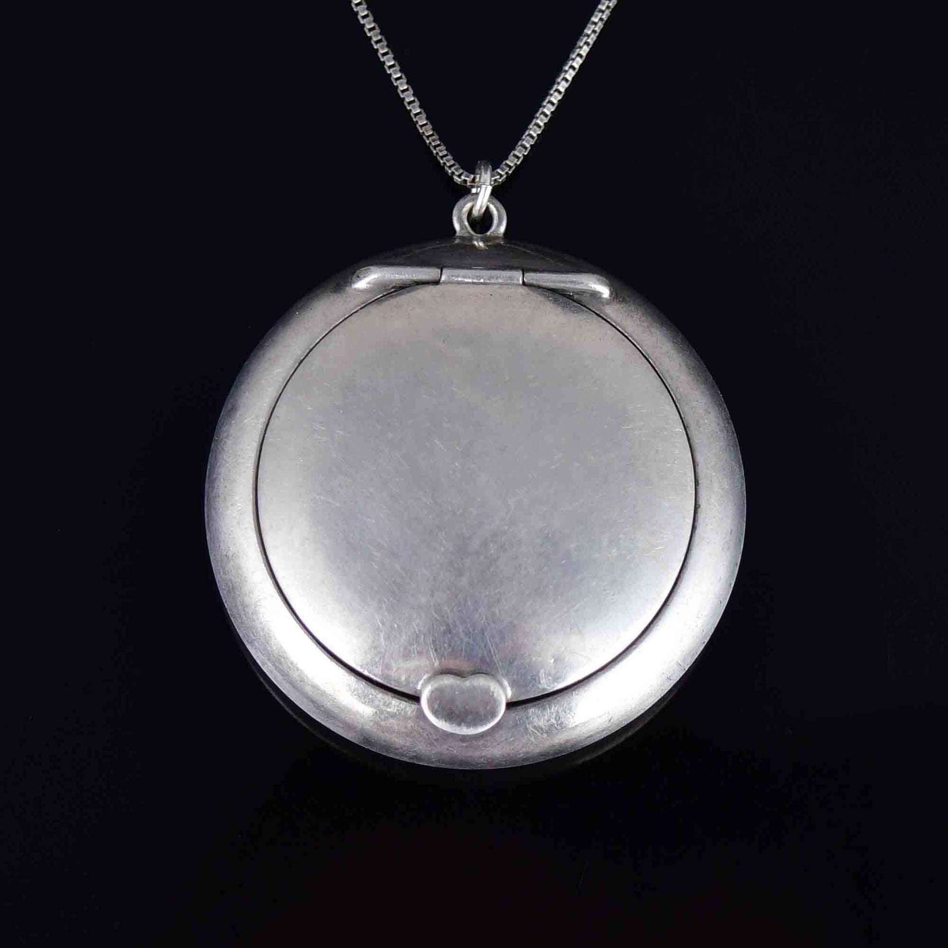 Antique Art Deco Sterling Silver Powder Compact Locket Necklace