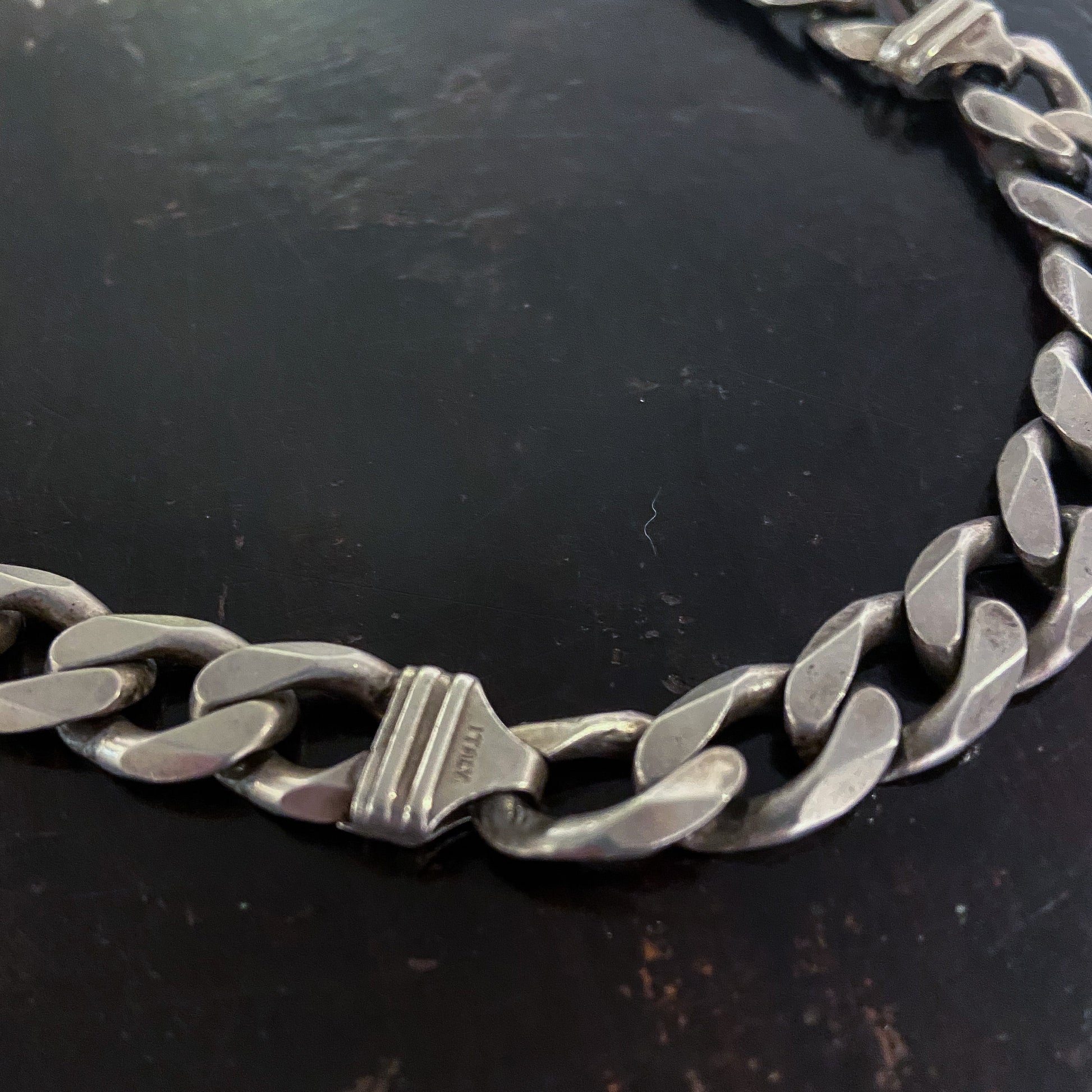SOLD--Heavy Unisex Flat Curb Link Chain Sterling c. 1980