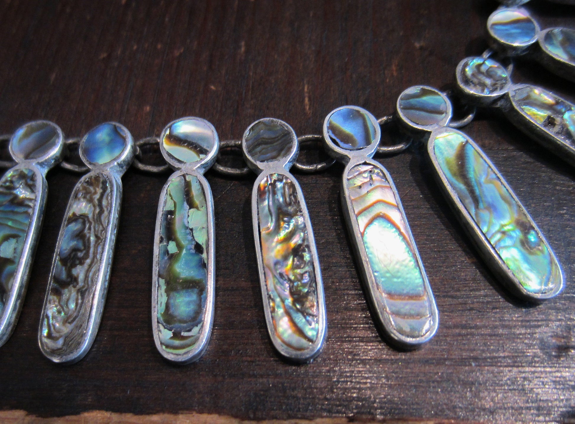 SOLD--Mid-Century Inlaid Abalone Collar Sterling, Taxco c. 1970